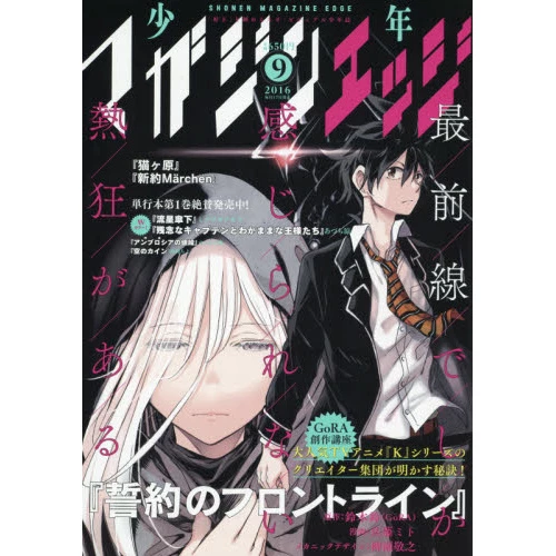 Seiyaku no Frontline takes center stage on the September 2016 issue with cover artwork and a main feature inside, plus the latest from K series creator GoRA and new chapters of Shinyaku Marchen, Nekogahara, and tons more.