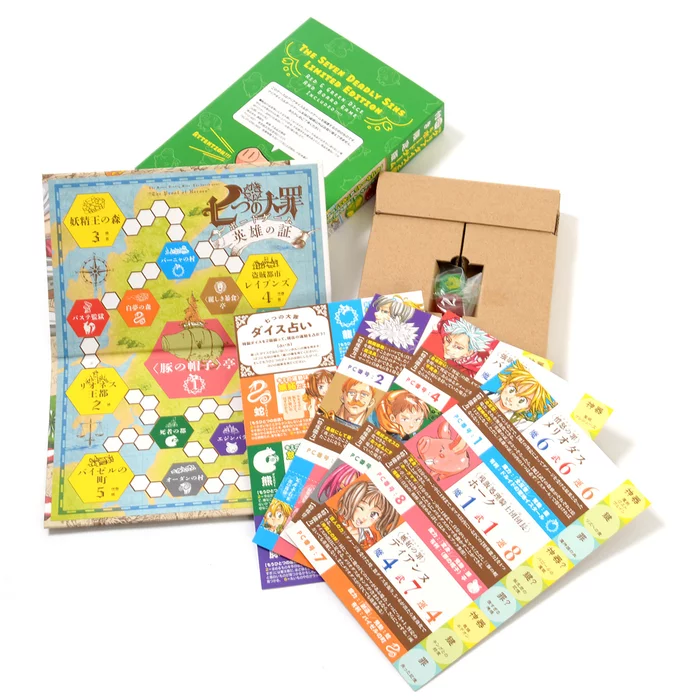 You won't want to miss what's in store for Meliodas and gang in Vol. 23, and that goes double for the bonuses in this Limited Edition: a set of two six-sided clear dice designed with the crests of the Seven Deadly Sins and a board game called "Proof of Heroism"!