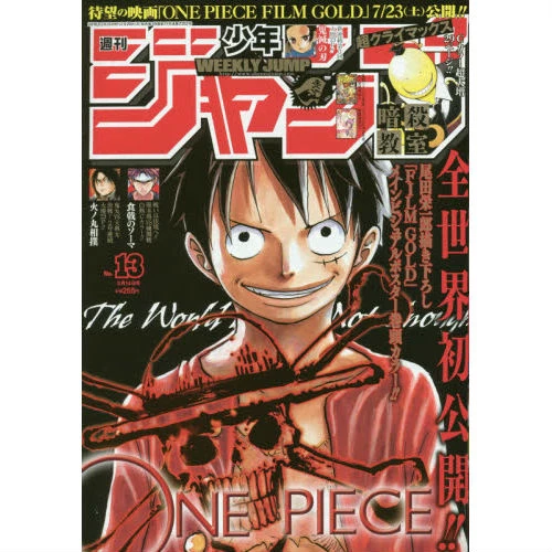 This March 2016, Week 2 issue is just as packed as always with your favorite series and includes the latest chapters of Assassination Classroom, Food Wars: Shogeki no Soma, Kimetsu no Yaiba, and Hinomaru Zumo in color, and features One Piece on the cover with a colored feature inside.